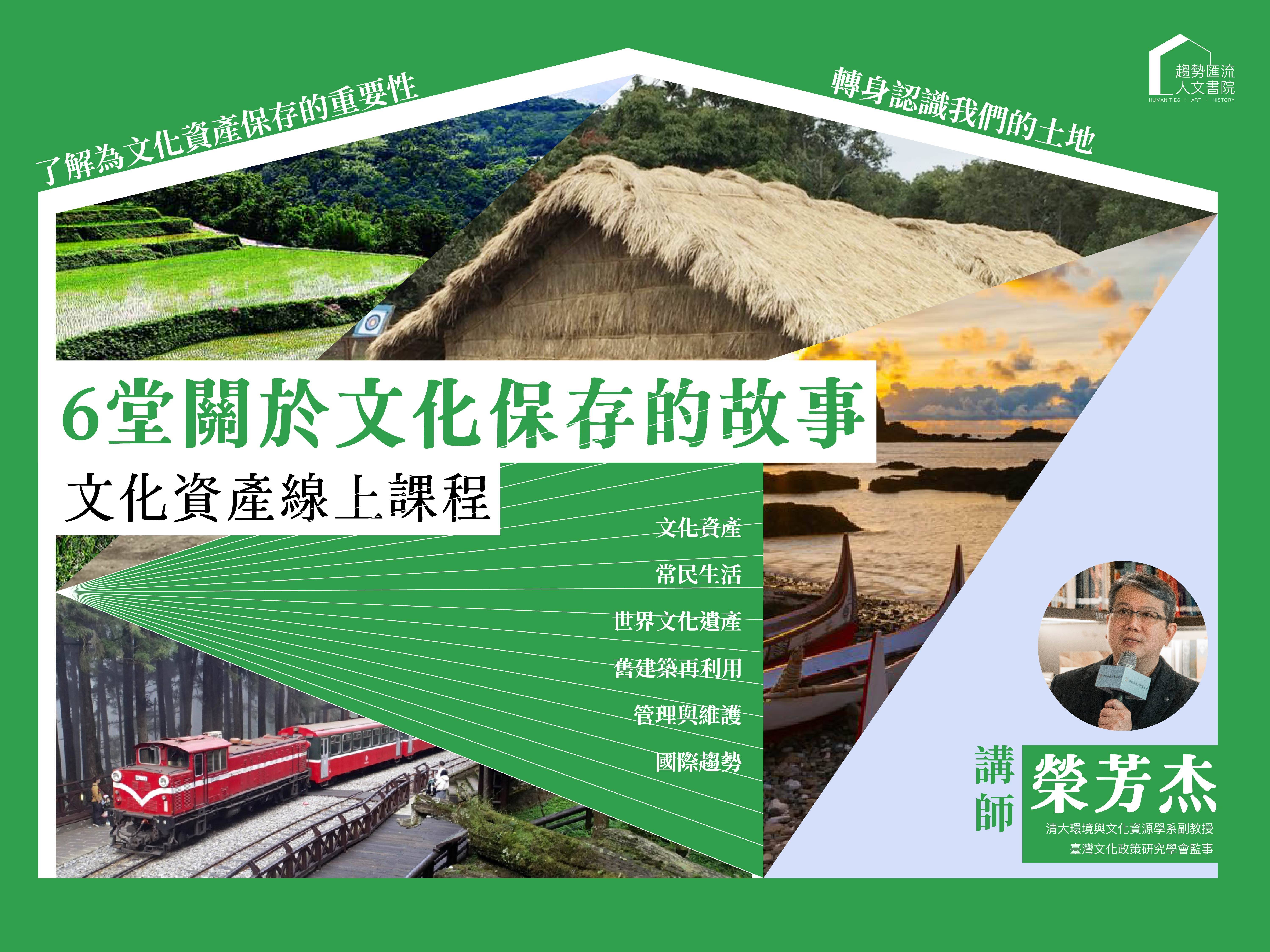 這六堂課,可以幫助您更了解為文化資產保存的重要性,同時也可以讓大家快速理解該如何從對文化資產的關注轉身認識我們自己生長的土地。如果你曾經好奇在這迅速變動的時代、我們身邊的歷史文化軌跡如何被留存,那麼歡迎跟著我們精心安排的課程,一起走入文化資產的生命軌跡、也讓文化與歷史走進我們的日常生活之中。